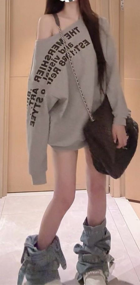 片方の肩を落として着るオフショルダースタイルで、こなれ感のある着こなしが楽しめます。