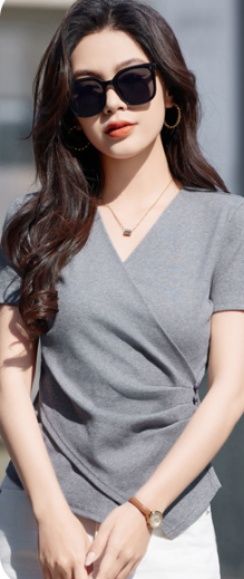 グレーファッションを楽しむ大人の女性におすすめの洗練されたシャツです。
